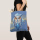 Blue & White Owl Gold Glitter Blue Halloween Tote Bag
