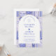 A timeless blue and white design inspired by classic Delft porcelain and French toile patterns. The patchwork tile border combines delicate florals, stripes, and ornamental motifs that evoke vintage European ceramics. A soft arched panel in the centre keeps the layout refined and elegant while allowing the details of the porcelain-inspired pattern to frame the celebration beautifully. Perfect for couples planning a sophisticated blue and white wedding with traditional European charm.