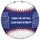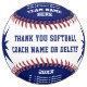 All Player's, Coach, Team Name, Year on Personalised Softball Coach Gifts, Ball. You, or Designer Linda: 239-949-9090, can CHANGE the Navy Blue and White Softball background and text colours to YOUR TEAM COLORS. To SAVE all your Text, for Multiple gifts for Softball Coaches, PERSONALIZE the FIRST softball, Add to Cart, then Click on the small softball ball image, IN YOUR CART. Now you only need to Change the COACH NAME.