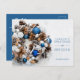 Business holiday greeting postcards feature a beautiful wreath of blue and silver ornaments, pine cones with Season's Greetings (or any wording) and your company name on the front, your personalised thank you message, names and logo on the back.