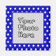 Customise this blue and white polka dot photo frame magnet by replacing the centre placeholder image with your own digitally uploaded photo. This design will work on square or round magnets but the frame cutout will remain square.