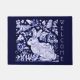 My original, copyrighted blue and white rabbit ceramic tile design is a classic decoration for a pretty welcome mat. "Welcome" is printed vertically next to the artwork of a cute bunny rabbit and birds in a stylised garden filled with vines and flowers inspired by antique Delft, Dedham and Asian chinoiserie pottery motifs. Whimsical, original, unique artwork & design by Tuzi Williams.