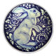 My original, copyrighted blue and white rabbit design creates an intricate drawer pull.