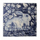 My original, copyrighted tile design features a rabbit and stylised floral background in crisp cobalt blue and white.