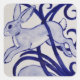 Blue & White Rabbit Hare Art Deco Tile Scroll Square Sticker