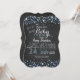It's a Boy! Personalise this elegant, retro light blue & white confetti, rustic vintage chalkboard, chalk, look baby shower invitation. Perfect year round for spring, summer, fall, or winter neutral baby showers.