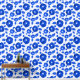 Bold blue and white roses are stung on their own, but look closely - there are faded light blue leaves in the background of white.