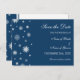 Winter Wedding save the date announcement postcards in elegant dark navy blue and white festive snowflakes pattern, stylish and fully customisable with your wedding details. Perfect for a Christmas or winter wedding. Also available in many other products for the wedding party.