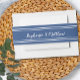 Complete your wedding invitation suites in style with our modern, minimalist classic blue and white belly bands. Design features a double frame border in crisp white on a trendy classic blue background. Personalise wedding design with your first names in crisp white script.