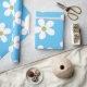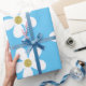 Blue White Simple Daisy Gold Wrapping Paper