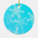 Blue White Snowflakes Minimalist Christmas Name Ceramic Ornament