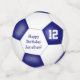 This sporty soccer birthday party confetti features a stylised soccer ball graphic, with the soccer ball's typically black panels recolored blue, on the front and back of each confetti piece, upon which you can customise your text - by katz_d_zynes