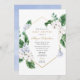 Blue white spring florals gold boy baby shower invitation