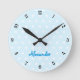 Blue White Stars Custom Name Boys Room Nursery Round Clock