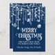 Blue and White String Lights Christmas card with a cute whimsical fun and festive holiday greeting.