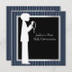 Navy blue, black and white stripe boy with rosary boys first holy communion invitation.