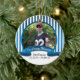 Remember your loved one with this blue and white striped keepsake ornament. Personalise with your information and photo. If you need help, please email shutterbug600@yahoo.com