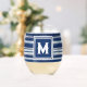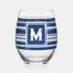 Blue & White Striped Monogram Stemless Wine Glass