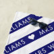 Blue and white san serif script font diagonal striped Mrs. wedding beach towel for a bride / newlywed wife.