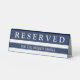 Nautical blue and white, striped wedding reserved table tent sign with serif font. Personalise it as needed.