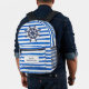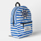 Blue White Stripes, Helm, Boat Name Printed Backpack