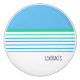 Modern, coastal style, blue, white and teal green colour, striped ceramic knob, featuring custom text, designed by TheLakeIsland.