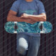 Blue White Teal Sea Waves Splash Abstraction Skateboard