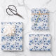 Beautiful blue and white toile floral wrapping paper. Perfect for baby showers, bridal showers, birthdays and weddings. This comes in a set of three matching sheets of paper.