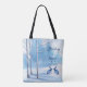 Winter woodland landscape watercolor trees and rabbits wedding welcome bag. This blue and white winter personalised wedding bag is perfect for a winter wedding. This winter trees wedding welcome bag features a beautiful watercolor snowy landscape with trees, snow, and rabbits. This personalised winter wedding totebag has a rustic outdoor feel. It's perfect for a wedding in a forest, meadow or mountain recreation area in the winter.