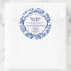 A label for soap and bath products with blue flowers on a white background. Customise it with your product and business information. This label measures 3 inches (25.4 mm) in diameter and is suitable for low profile jars with lids measuring at least 3 inches (25.4 mm) in diameter. This label makes a great choice for packaging beauty products in jars that require large circular labels like sugar scrubs, body butters, and thick lotions and creams.