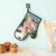 Oven mitt for a parent or grandparent personalised with a photo of the kids or grandkids with WE LOVE YOU written along the side in navy blue against lighter blue with white hearts. Surprise grandma or grandpa with a personalised oven mitt printed with a photo of the grandkid(s) and WE LOVE YOU in dark blue flanked by white hearts against a light blue background. Great father's day gift for a dad who loves to cook or fire up the grill with a photo of the kids with WE LOVE YOU printed in navy blue.