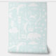 Blue & White Wild Animal Pattern Wallpaper