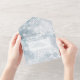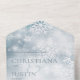 ALSO AVAILABLE WITH A QR CODE TO SCAN. This design features a soft bokeh blue sky highlighting a snowfall on a bed on white. This design is part of the Blue Winter Snow Modern Wedding Suite Collection. Personalised All-In-One invitations are a unique combination of both a beautifully printed custom invitation with an easy to tear off perforated RSVP postcard. And they are so easy to use! You simply fold, then seal the back flap with the three included clear stickers, and mail. And when your guests receive your custom invite, they just tear the perforated RSVP Card off and drop it back in the mail to you!