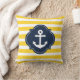 Blue White & Yellow Nautical Anchor Striped Pillow.