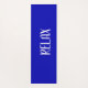 Blue background with white text. Yoga Calming Zone quote. Typography including body, mind, soul, breathe. Personalise Name in white text. Artwork of white double five poiint star inside deeper blue, black, white geometric pattern in centre. Relax is written across the backside. Original Quote Artwork Design © 2020 TamiraZDesigns.