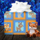 Adorable Woodland Animals Wrapping Paper - Featuring a Fox, Deer, Bear and Bunny in shades of Blue, Orange and Brown. Great for any baby shower or birthday gift, but is part of our "Wild One" 1st Birthday collection.