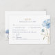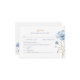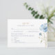 This watercolor RSVP card showcases blue wildflowers arranged in a soft, airy botanical style. The design blends rustic charm with modern simplicity, making it perfect for outdoor and garden weddings. Guests can respond easily, and the coordinating reverse-side design adds an elegant finishing touch. All text is fully editable so you can personalize it for your celebration. A lovely addition to your blue floral wedding suite.