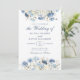Announce your special day with this refined wedding invitation featuring soft blue wildflowers and delicate watercolor details. The balanced layout and blue-accented typography create an elegant yet organic aesthetic. Ideal for garden, boho, meadow, or coastal weddings with a fresh blue palette. Easily customise all wording to suit your ceremony style and location. Printed on premium paper for luxurious texture and crisp colour. A stunning invitation that sets the tone for a romantic celebration.