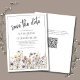This Blue Wildflowers Modern Elegant Floral Wedding Save the Date features beautiful wildflowers in blue, yellow and purple, modern typography and is fully customisable with your names, wedding details and a QR code for your wedding website. The formal design and wording add a touch of elegance to your wedding celebration.