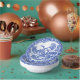 The look of classic, vintage Blue Willow pottery with a unique, modern twist! On a vintage - look crackle design background, my original, hand painted oriental -look island scene includes stylised trees, rocks and a temple building, with blue and white floral bunny rabbits leaping on the lawns. Perfect for any rabbit or animal lover or for anyone who loves blue and white pottery and decor. Whimsical, unique, original artwork & design by Tuzi Williams.