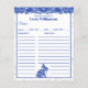 Personalise these recipe cards with the name of a special cook's kitchen! These cards are decorated in traditional blue and white Blue Willow china motifs of a decorative top border and a floral - decorated rabbit, all my hand painted interpretations. The border resembles a crackled pottery glaze. The cards are lined front and back to make it easy to write your recipe. It's easy to customise these with a name, using the text template and edit menu.This popular china pattern is beloved and timeless. Whimsical, unique design by Tuzi Williams.
