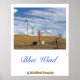 Photo of a hilltop crowned my modern windmills. In the foreground is an old windmill at a watering trough for the sheep.