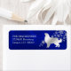 This distinctive return address label features a silver silhouette Bernese Mountain Dog image in front of a spray of ornate silver snowflakes. The image is placed on a gradient deep blue background. Your custom text is in matching silver at the left of the image. Beautiful!