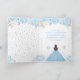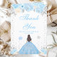 This elegant and glamourous thank you card features a beautiful princess with brunette hair and fair skin in a blue ball gown. The text combines handwritten script and modern sans serif fonts for a classy and sophisticated look. The floral arrangements, snowflakes and silver confetti create the perfect blend of rustic and chic. Perfect for a winter themed birthday party.