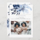 Stunning Blue Winter Flower Bloom Holiday Greetings Photo Personalised Card - Holiday Photo card from Ricaso - this Photo Personalised card is sure to be a hit with family and friends .. easy to add your own text and photograph - Send your greetings in style this holiday with a personalised card featuring a wonderful floral design to the front and a coordinating pattern to the back - designed with festive colours of ice blue and white