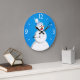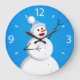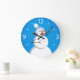 Cute snowman design with an illustration of a happy snowman singing on vibrant blue background. Snow is falling and snowflakes are everywhere, happiness around. This happy snowman design is cheerful and lovely and perfect for winter holidays gifts such as Christmas.
