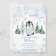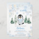 Bring frosty fun to your celebration with this adorable Blue Winter Penguin Birthday Party Invitation! Featuring a cute penguin wearing a cosy blue scarf, the design captures the magic of winter with snowflakes gently falling around the penguin, while pine trees add a festive touch. The soft blue and white florals around the edges complete the look, creating a serene winter wonderland vibe. This invitation promises a memorable event filled with joy, warmth, and all the charm of the season. BRT193