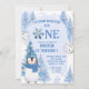 Blue Winter Snow Much Fun First Birthday Invitation