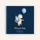 Complement your baby shower party with this guest book. It has an illustration of a baby dragon holding a blue balloon on a dark blue background and the title reads "wishes for baby", but all the text is customisable. Illustrated and designed by Patricia Alvarez.