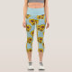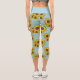 Blue With Bright Yellow Watercolor Sunflowers Capri Leggings